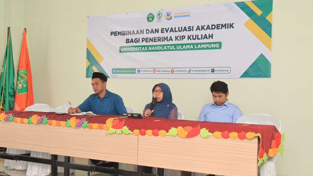 Universitas Nahdlatul Ulama Lampung menyelenggarakan kegiatan Pembinaan dan Evaluasi Mahasiswa Penerima KIP Kuliah sebagai upaya meningkatkan kualitas akademik, kedisiplinan, serta partisipasi mahasiswa dalam berbagai program pengembangan diri. Kegiatan ini diikuti oleh mahasiswa penerima KIP Kuliah dari berbagai program studi di lingkungan kampus UNU Lampung yang dilaksanakan pada 11-12 Maret 2026.